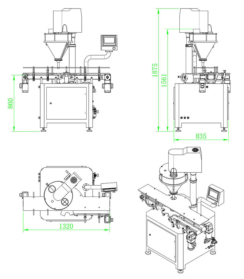該系列罐裝機能完成喂罐、托罐、充填計量、稱重選別等工作,可與其它設備配套組成整套罐裝流水線,適用于充填眼影粉、閃粉、胡椒粉、辣椒粉、奶粉、米粉、蛋白粉、豆奶粉、雞粉、咖啡粉、藥粉、添加劑、香精香料等。